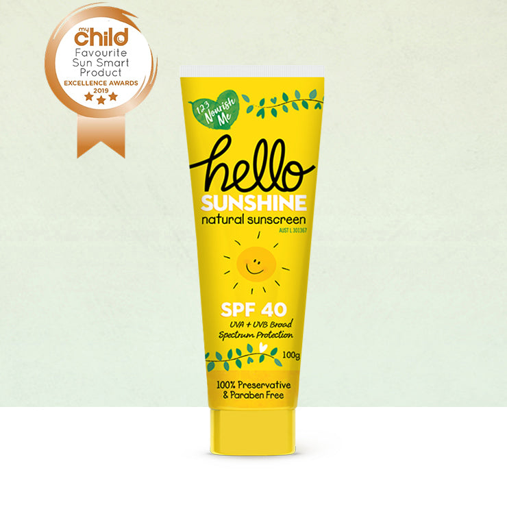 We are head over heels in love with our Hello Sunshine natural sunscreen for babies, kids and the whole family! This natural sunscreen glides on smoothly but is thick enough to stay on for protection. Also great for the family! Hello Sunshine is free from all synthetic preservatives and parabens. Natural, safe and smells delicious!
