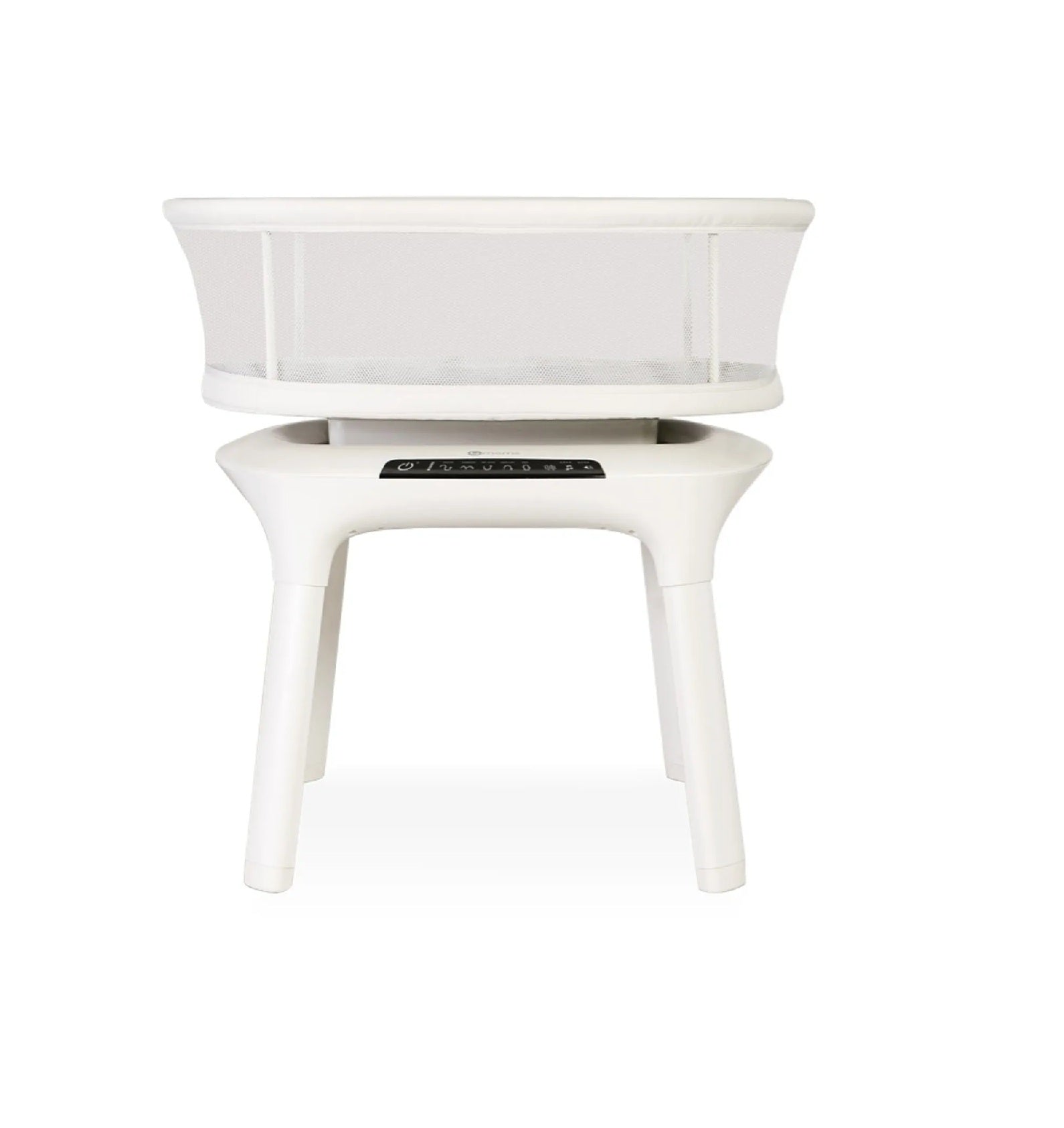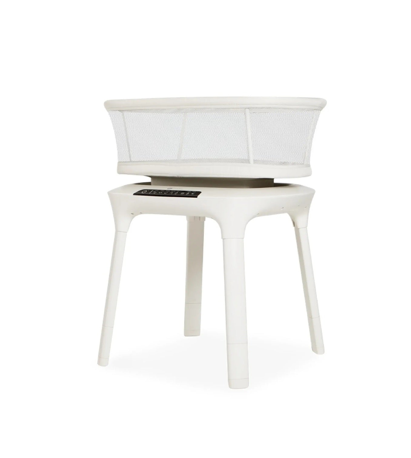 The 4moms® mamaRoo sleep™ bassinet uses the same proven motions of the 4moms mamaRoo® infant seat to help your baby fall asleep and stay asleep longer. Soothe and comfort baby in the 4moms mamaRoo sleep bassinet with its natural bounce and sway motions that move just like parents do. It features 5 unique motions (car ride, wave, kangaroo, tree swing and rock-a-bye), and 5 speed options to find the perfect combination baby loves. You can also play one of the 4 white noise options (rain, ocean, fan and shh). Easily control all features via the 4moms app on a compatible smart device. The 4moms app also features a timer that can be used to help establish a bedtime routine and improve sleep. The mamaRoo sleep bassinet provides a firm, flat sleep surface that follows the AAP’s Safe Sleep Guidelines. Features such as height adjust, for optimal visibility & accessibility, and mesh sides create a safe sleep environment and give you peace of mind so that you and your baby can sleep soundly.
