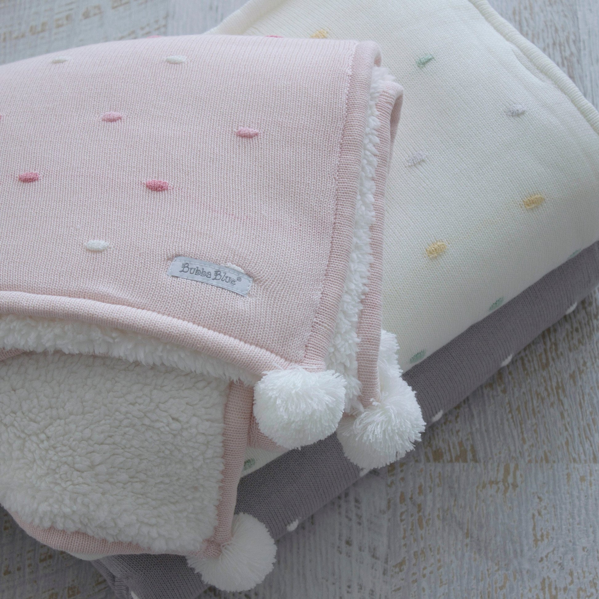 Featuring a stylish embroidered confetti dot front in Bamboo Viscose/Cotton Knit, and a super soft and cuddly fleece lining. With adorable corner pom pom details - our classic Confetti blanket is sure to become one of your baby’s favourites.