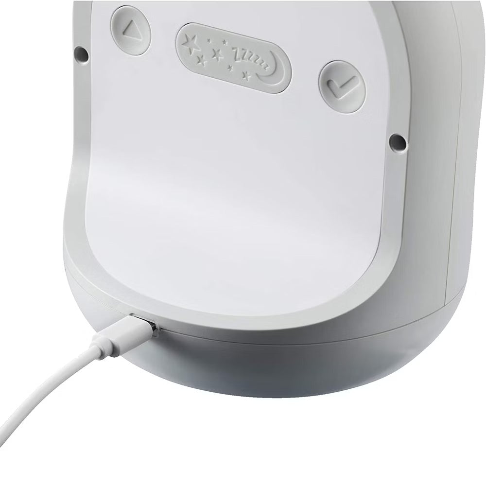 The Sleep Trainer Clock guides your child in recognizing when it’s time to sleep and when to wake up. It features a free downloadable app that lets you manage the display, music, colors, brightness, and alarm settings remotely from your phone. Select from five calming lullabies and five natural sounds to help your child relax and fall asleep. A child lock prevents unintended changes, and the clock retains all settings during power outages. It charges via micro-USB, eliminating the need for batteries (*charger not included but compatible with most USB phone chargers).