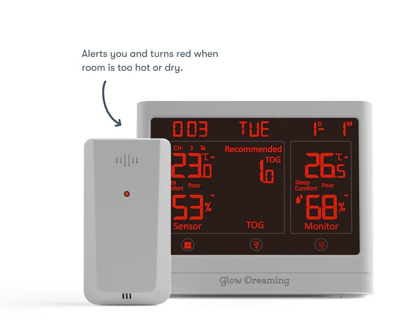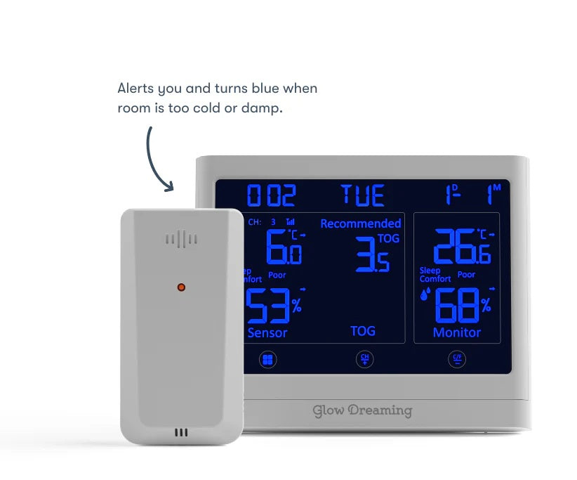 BLUE - Alerts you and turns blue when room is too cold or damp