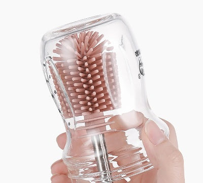 Make cleaning easier with Haakaa's Double-Ended Silicone Brush! The soft, flexible and 100% silicone bristles provide a 360 clean. On one end is a brush head that's perfectly sized for scrubbing your pumps, bottles, milk storage bags (and any general kitchen items), and on the other is a thinner conical brush head with an angled tip to reach into the corners of your bottle teats, milk collectors and more! This brush is made to last, unlike plastic dish brushes that accumulate food particles, are prone to bad smells, and need frequent replacing. The silicone brush heads are removable and can be boiled to sterilise them, making it easy to keep the brush clean and free from odours.