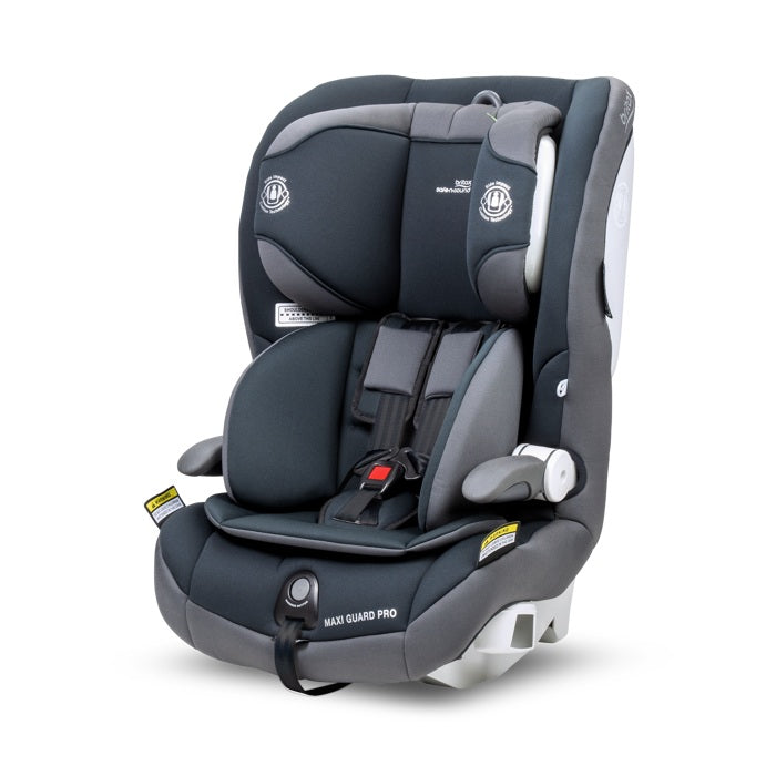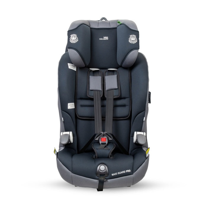 The Maxi Guard PRO Forward Facing Harnessed seat, a distinguished member of the Maxi Family, is designed for children aged approximately 6 months to 8 years. It incorporates SICT™ Safety Technology with dual-layer Head and Torso Side Impact Cushion Technology™ to reduce side impact forces effectively. Featuring an inbuilt Hassle Free Harness™ with six points of restraint, it ensures secure and extended protection. The seat is upholstered in Thermo5® high-performance fabric infused with Bamboo Charcoal, offering superior comfort by promoting airflow and moisture-wicking to keep your child cool and dry throughout the journey.