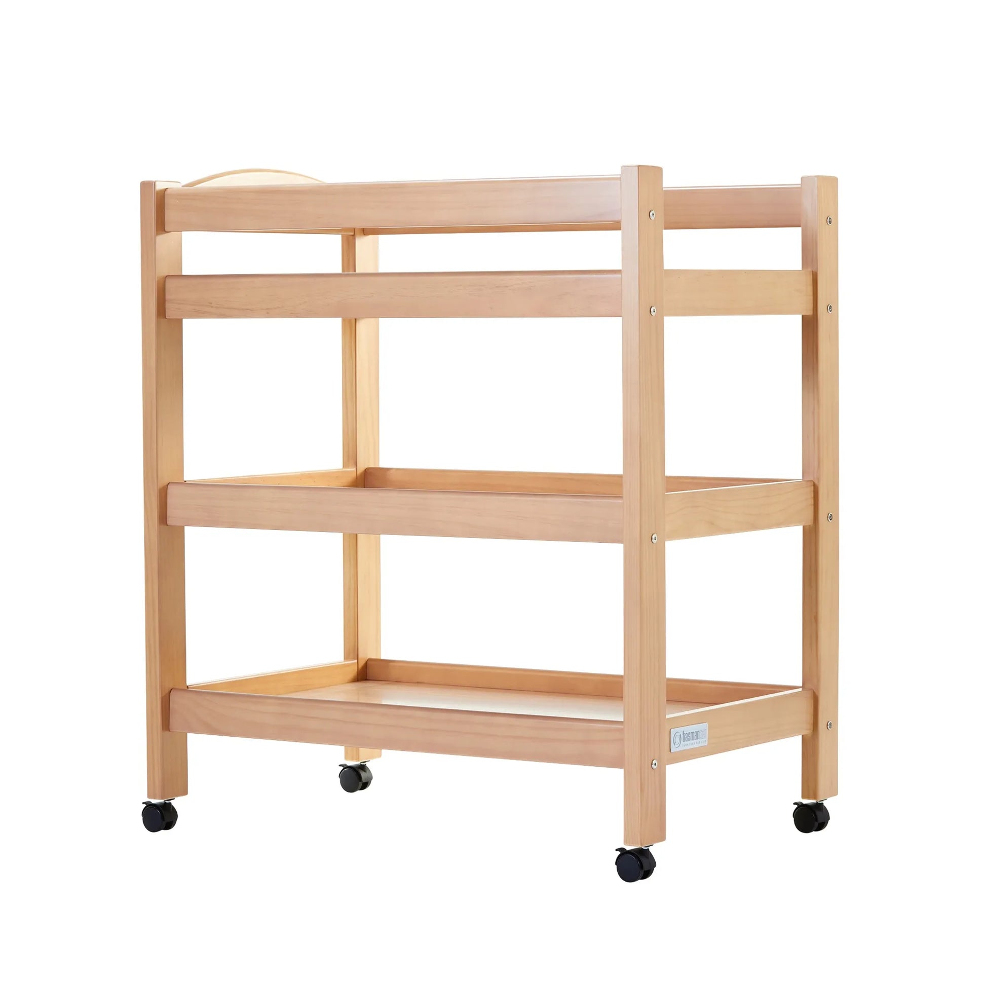 The Turin Change Table has high side panels to prevent any rolling, as well as two shelves for sufficient storage, wheels for easy transitions between spaces and brakes for added safety.