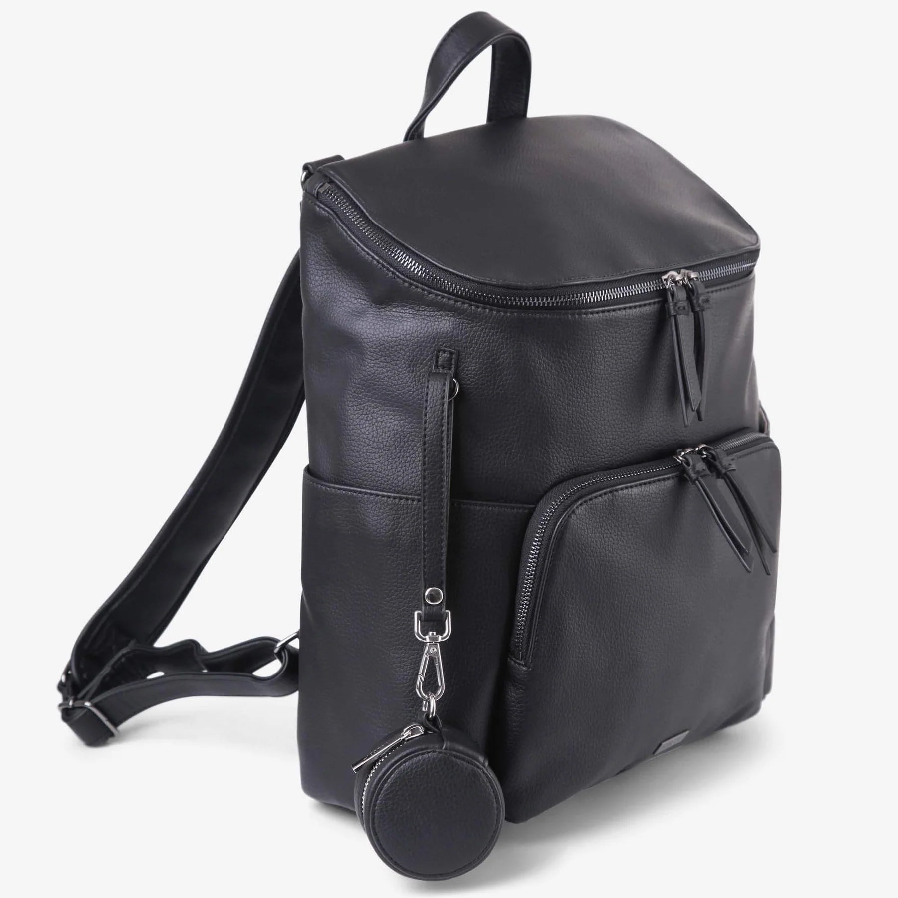 Crafted from premium vegan leather, this backpack balances structure and flexibility for effortless access without bulk. It features a water-resistant lining that wipes clean and offers clear visibility. The wide opening accommodates larger items with ease. Designed with padded, matching vegan leather straps for comfort and style, it also includes a detachable shoulder strap for versatile wear. Customize with an optional luggage tag or VANCHI tassel. Dimensions: 33W x 36H x 15D cm.