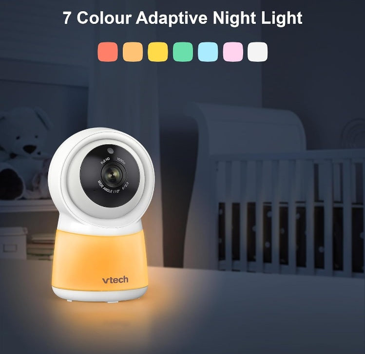 - 7" HD parent unit with 1080p HD camera with automatic night vision, wide angle viewing, multi-colour night light, 8x local digital zoom and 10x remote digital zoom.